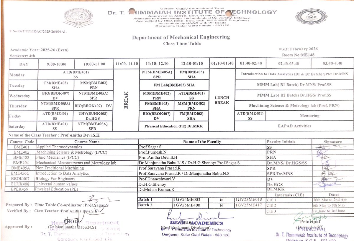 Dr. TTIT Institution’s Innovation Council in association with the ME Department organized two sessions on Value Proposition Fit & Business Fit exclusively for all dept students on 25th Aug 2025 at the ME Seminar Hall.