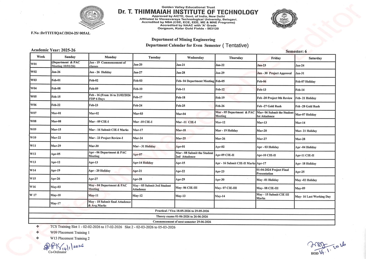 | 1 | Mineral Identification | 2nd | Mr. Dinesh, Mr. Sanjay M, Ms. Vidhya G |