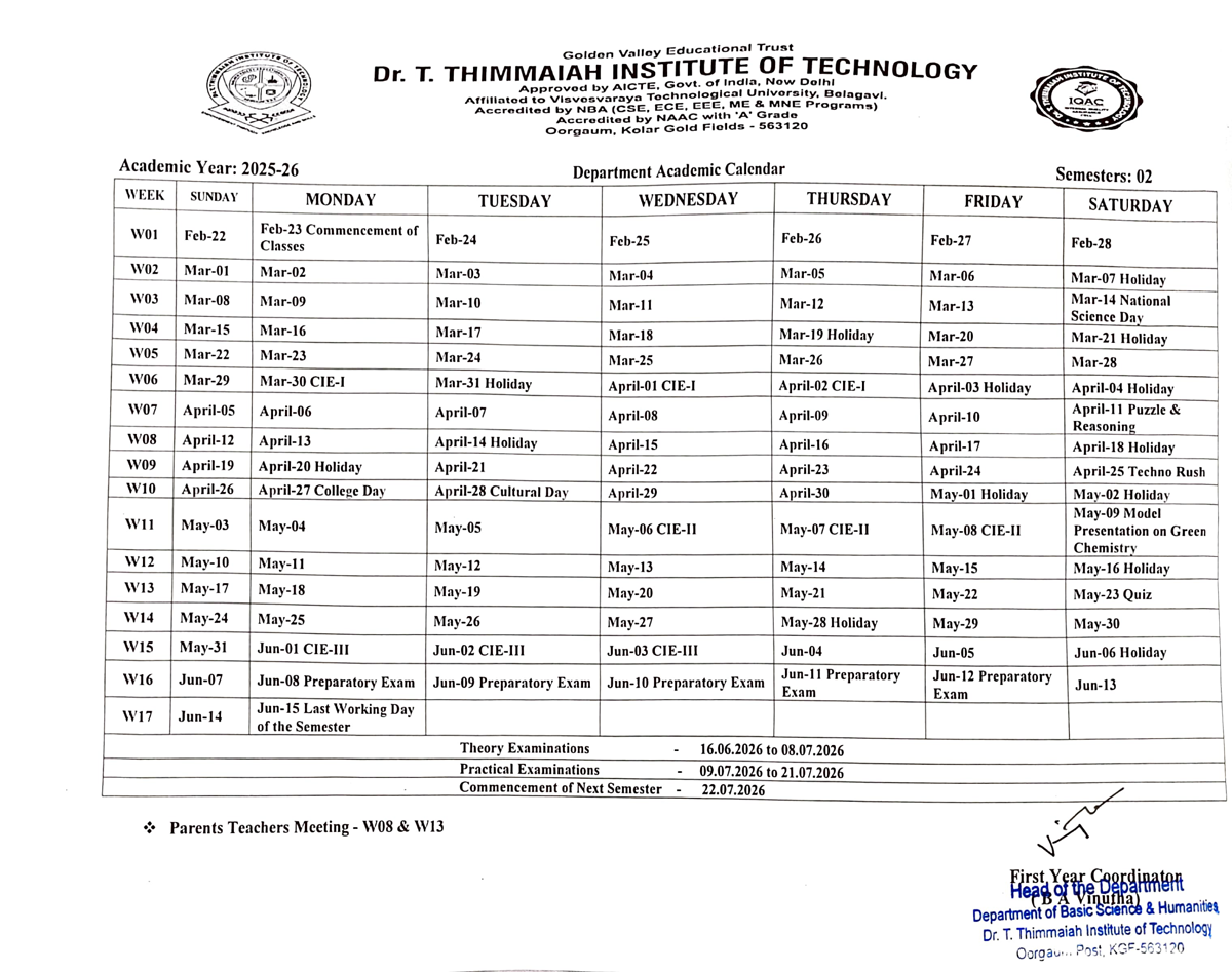 Department of Science & Humanities lays A strong foundation in building up the career of the student, to take-up all challenges and finish targets successfully. The department has experienced and talented faculties in the field of physics, chemistry and mathematics. The laboratories are well equipped to coach and train the students on fundamentals on science as well as their application in the technical field.